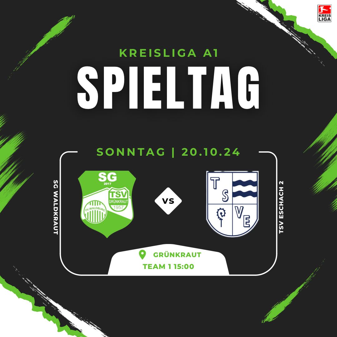Da der Platz in Eschach nicht bespielbar war wurde das Spiel von Team 1 kurzfristig nach Grünkraut verlegt. Nach der schlechten Leistung gegen Haisterkirch vergangene Woche wollte unser Team unbedingt ein anderes Gesicht zeigen und das Spiel mit einem Sieg beenden. Entsprechend motiviert ging man ins Spiel und hatte von Beginn an die starke Offensive des Gasts im Griff. Auch in der Offensive konnte sich unser Team einige Feldvorteile verschaffen. Trotz guter Chancen wollte allerdings in der ersten Halbzeit kein Tor gelingen. Nachdem man sich in den ersten 15 Minuten einige gute Chancen herausspielen konnte, war es Luis Pfeiffer der in der 61. Spielminute einen klaren Elfmeter herausholen konnte. Nach einer guten Ballannahme konnte er auf dem Weg im Sechzehner Richtung Tor nur noch durch ein Foulspiel gestoppt werden. Den fälligen Strafstoß verwandelte Marius Müller souverän zum 1:0. Damit konnte er vorübergehend sogar die Führung in der Torschützenliste der Liga übernehmen. Nur zwei Minuten später war es Laurin Riedesser, der mit einem Traumtor der Extraklasse die Führung ausbauen konnte. Einen Schuß aus ca. 25 Meter drosch er kompromisslos ins Lattenkreuz. Die restliche halbe Stunde sollte gefüllt sein mit Chancen am laufenden Band unserer SG. Der Gast aus Eschach hätte sich am Ende über weitere Gegentore nicht beschweren können. Jedoch nutzte unser Team keine der weiteren Chancen und hielt den TSV somit im Spiel. Dennoch brachte man das Ergebnis über die Zeit und siegte verdient. Nach langer Zeit endlich mal wieder ein Spiel ohne Gegentor. Jedoch muss sich die Offensive, aufgrund der vergebenen Chancen wohl vorwerfen lassen, nicht das beste Spiel abgeliefert zu haben.